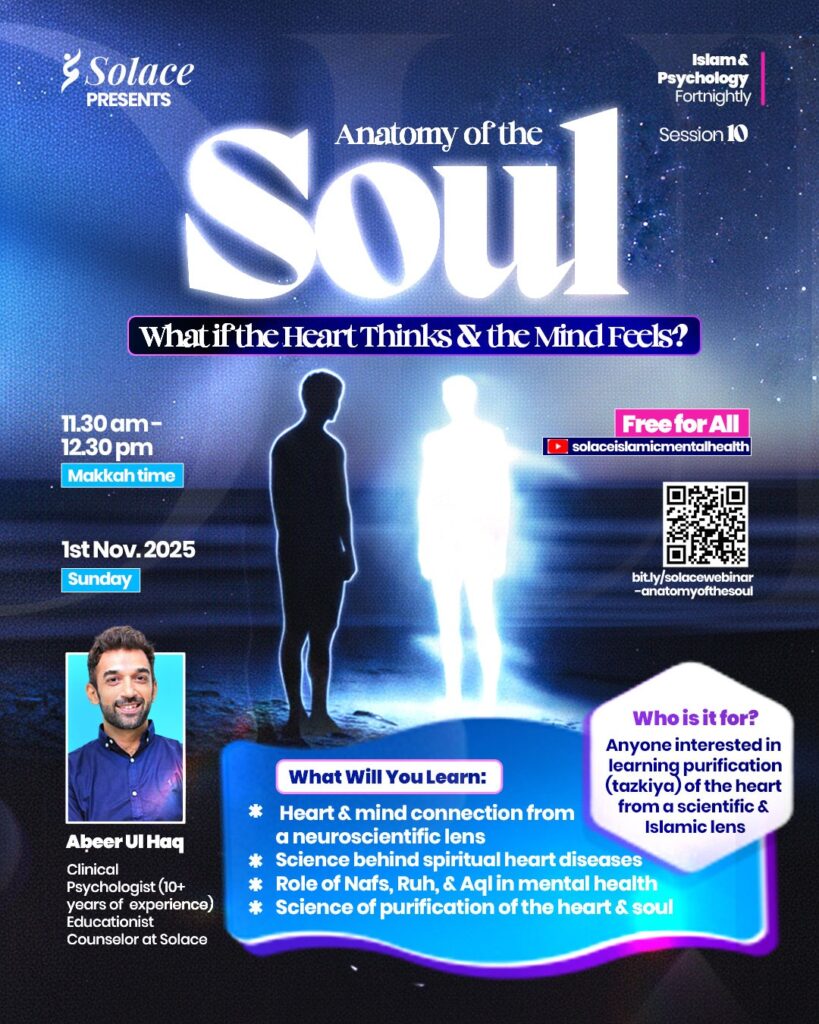 Our upcoming Islam & Psychology Fortnightly webinar with Abeer Ul Haq (Solace Counselor) is especially created to uncover the wisdom behind this declaration from a psychology, neuroscience & Islamic perspective.