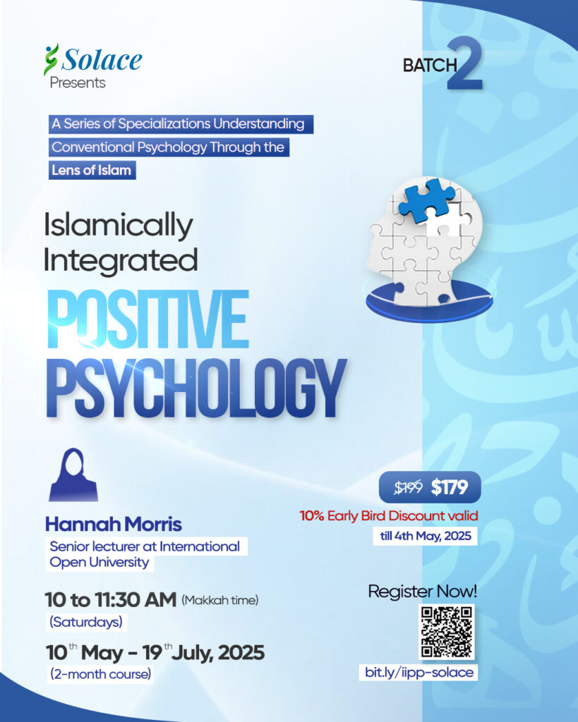 – Be able to identify the ways in which positive psychology concepts are rooted within the Qur’an and Sunnah.
