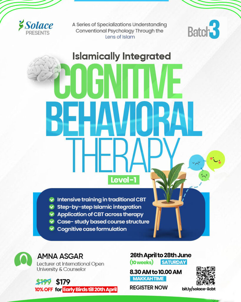 Cognitive behavioral therapy (CBT): Islamically integrated study- Practitioner’s course is a course designed for mental health practitioners including but not limited to psychologists, psychiatrists and counsellors.